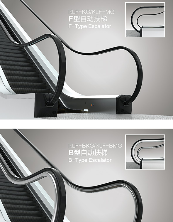 1)全透明式:指扶手护壁板采用全透明的玻璃制作的自动扶梯,按护壁板采用玻璃的形状又可进一步分为曲面玻璃式和平面玻璃式。